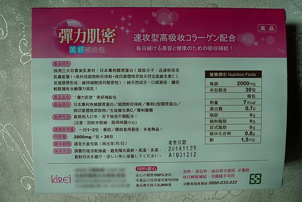女人過了25歲新陳代謝退化的速度很快,皮膚、頭髮也開始失去光澤及彈性,加上每日外食的不均衡飲食,使得大頭真看起來面有菜菜色ㄋ~ 此次有幸收到Kirei"彈力肌密"美妍補幾包,可食用兩週,剛好讓大頭真變得美美的,好回老家去過個好年啦!(這次回家就不會被媽媽唸,大頭真常被媽媽唸說不懂的保養)